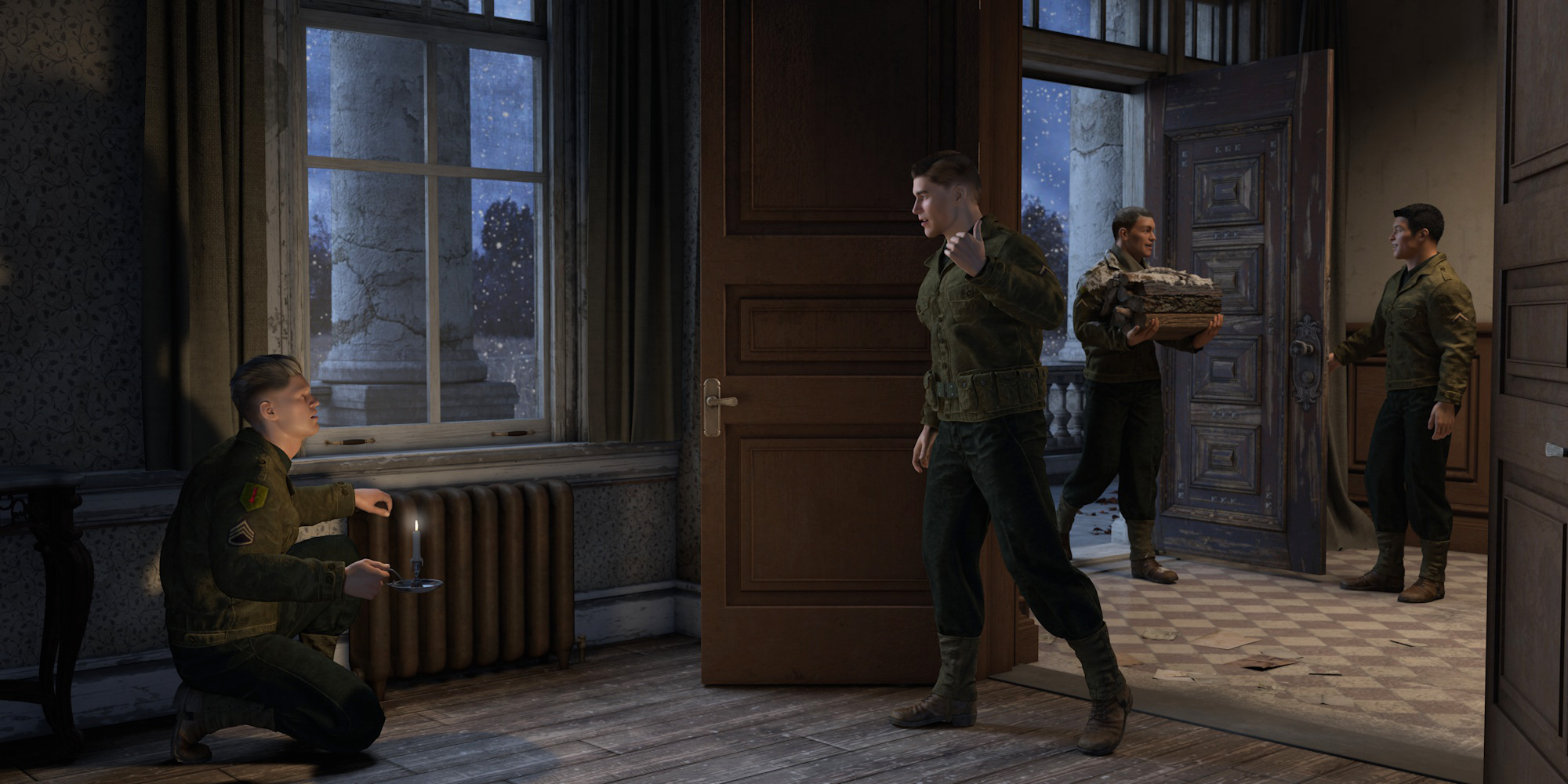 This is the second scene of The Shelter. In this series, a group of soldiers find shelter in an old abandoned building. Despite the creepy environment, the men find a way to get through the long and cold night.